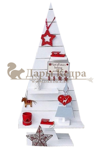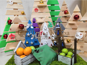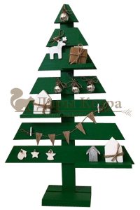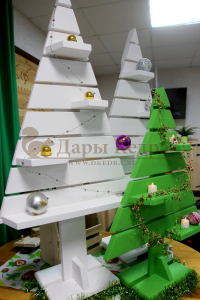 Деревянная елочка, по Вашему желанию, может быть покрашена в зеленый, белый, серый, фиолетовый цвета или покрыта бесцветным маслом, воском, лаком. Дополните новогоднюю красавицу гирляндой, шарами, бантами, и она засверкает по-новому.